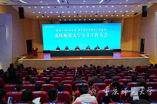 12月5日,为深入贯彻习近平新时代中国特色社会主义思想、党的十九大精神及全国教育大会精神,落实“不忘初心、牢记使命”主题教育总要求,落实重庆科教兴市、人才强市行动计划,落实学校第三次党代会精神,加快推进高水平师范大学建设进程,beat365官网召开了人才工作大会。此次会议的召开,充分体现了学校党政对人才工作的高度重视,彰显了人才在学校发展中的极端重要地位,表明了学校进一步推进人才强校战略的信心和决心。