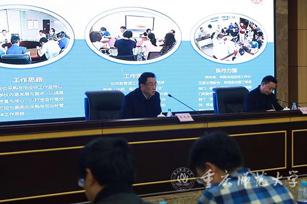 会议的第二阶段是业务培训。采购与招投标中心招投标管理科科长何中飞为各二级单位相关工作人员作了采购与招投标业务培训,详细讲解了学校采购相关政策及采购流程、要求等。