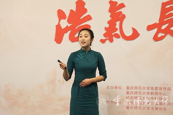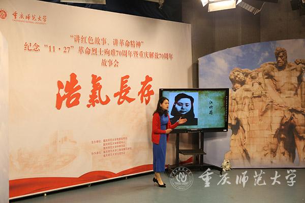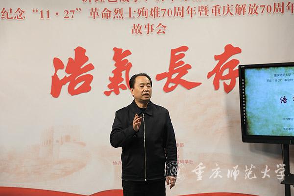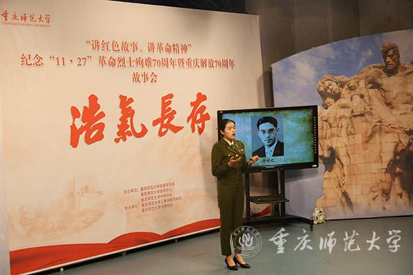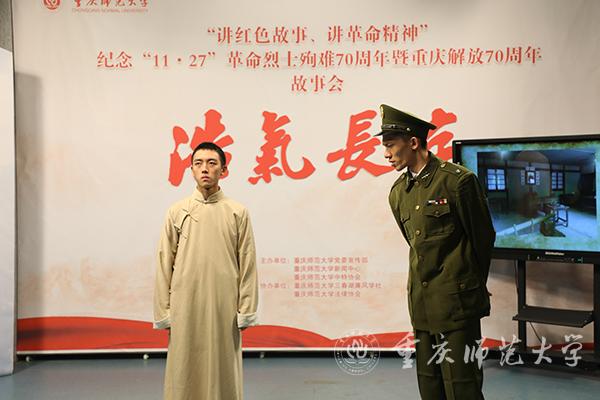 “70年来有着很多翻天地覆的变化,也有着沉痛的一幕幕。”党委宣传部徐赤副部长在主持中谈到,在纪念“11·27”革命烈士殉难70周年暨重庆解放70周年到来之际,beat365在线体育官网登录入口举行“浩气长存”故事会正当其时、意义重大。他鼓励同学们要在“讲好红色故事,讲好重师故事”中巩固和升华理想信念。