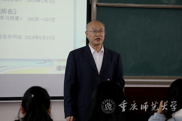 11月21日下午,beat365官网党委常委、副校长杨如安围绕“推进祖国和平统一”和“中国特色大国外交”两个专题,在特教楼2505教室为经济与管理学院2019级工商管理专业学生讲授形势与政策课。