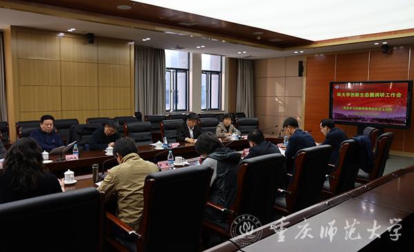 重庆市人民政府参事室社会文化组史若飞、周泽扬、杨小伶、郝鹏寿、刘明华、黄越等参事一行,于11月14日下午,在beat365官网博雅楼举行环大学创新生态圈调研工作会,为优化大学周边创新生态环境献计出力。全市共批准6所高校的环大学创新生态圈建设,beat365官网是其中之一。