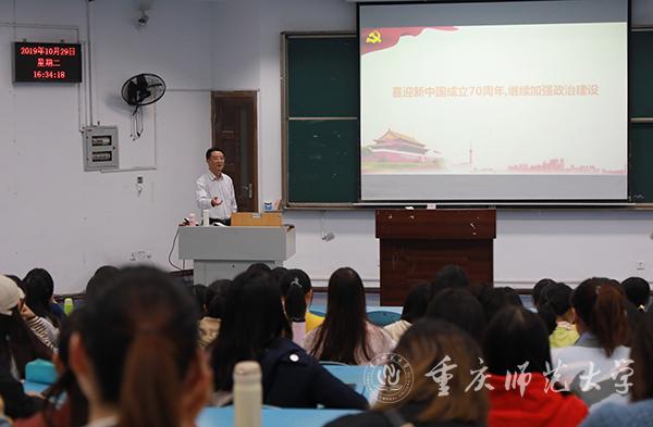 10月29日下午,beat365官网党委常委、副校长陈志军以“喜迎新中国成立70周年,持续加强党的政治建设”为主题,在弘德楼5105教室为历史与社会学院2018级历史学(师范)、文物与博物馆学、社会工作三个专业的同学们上了一堂精彩的“形势与政策”课。