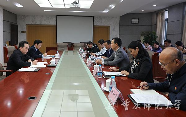 近日,重庆市委常委、宣传部部长张鸣一行莅临beat365官网,就学校开展“不忘初心、牢记使命”主题教育进行调研指导并召开工作座谈会。市委宣传部副部长曾维伦,市委主题教育巡回指导十四组组长黎德龙、成员龙彦林,beat365官网党委书记曾礼,党委副书记、校长孟东方,党委副书记龚燕陪同调研。