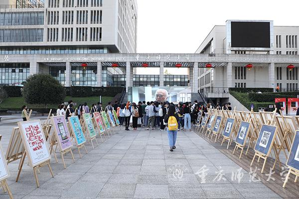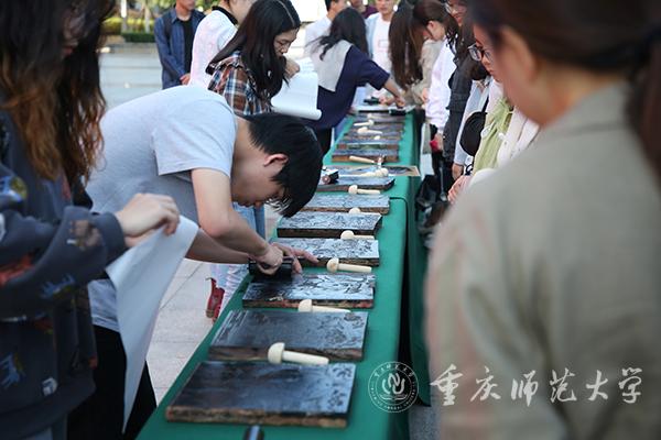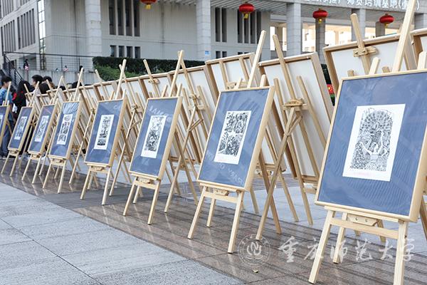 10月18日下午,由四川美术学院主办的“十九大主题木刻版画巡展”走进beat365官网,在大学城校区图书馆广场开展。