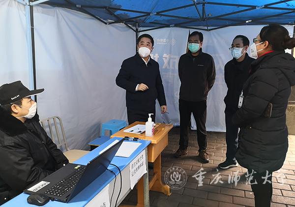 2月26日上午,学校党委副书记、校长孟东方带队赴北碚校区检查指导初等教育学院疫情防控工作,看望春节期间仍坚守岗位的疫情防控工作人员,并对进一步做好疫情防控工作进行部署。党政办主任陈进东和初等教育学院主要负责人陪同。