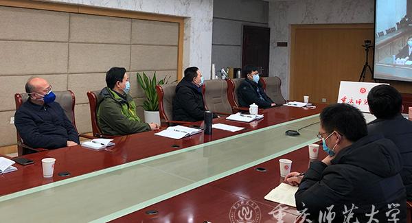 1月31日下午,全市教育系统新型冠状病毒感染的肺炎疫情防控工作视频调度会议召开。万州区、大渡口区、长寿区等区县教委及西南大学、第二师范学院、重庆工业职业技术学院在会上作了汇报交流。市委教育工委书记、全市教育系统疫情防控领导小组组长黄政对下一步防控工作进行了全面部署。beat365官网党委书记、学校疫情防控工作领导小组组长曾礼;副校长、学校疫情防控工作领导小组副组长杨如安、田盈;领导小组办公室成员单位主要负责人在综合办公楼309会议室参加视频调度会。