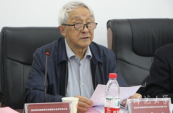 最后,中共重庆市委党史研究室徐光煦副主任讲话,对研究会第四次会员代表大会的成功召开和新一届理事会的成产生表示热烈祝贺,强调要认真学习贯彻习近平总书记关于延安精神的重要讲话和指示精神,增强“四个意识”、坚定“四个自信”、做到“两个维护”,要将学习、研究、宣传、践行延安精神落到实处,坚持用延安精神滋养初心、淬炼灵魂、强化担当,在新的历史条件下,坚持正确政治方向,服务党和国家工作大局,让延安精神深入人心,将延安精神发扬光大,奋力开创延安精神学习、研究、宣传的新局面。