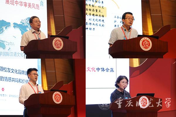 随后,历史与社会学院、美术学院、物理与电子工程学院、初等教育学院、国际汉语文化学院、校工会、对外联络与合作中心、学校文化建设办公室等8个二级单位进行了交流发言。各单位分享了自身的发展理念与发展特色,展示了近年来在院系文化、职工文化、校友文化、以文化人等方面所做出的辛勤努力和取得的突出成绩,并对未来的文化建设工作做出了有针对性的规划与设计。