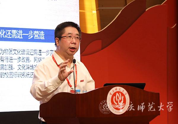他细数了2014年以来学校文化建设取得的丰硕成果。自2014年以来,学校持续推进文化强校发展战略,深入推进文明校园建设等各项工作,有力推动了beat365官网的文化建设。学校以健全完善工作体制机制为抓手,统筹推进文化建设;以社会主义核心价值观为引领,师生精神文化得到极大提升、行为文化建设扎实推进、物质文化建设不断加强;以制度文化建设为抓手,办学治校水平明显提升;以绿化、美化、文化校园为载体,校园环境文化形成特色;各二级单位结合实际加强特色文化建设,开展了丰富多彩的文化活动;学校聚焦文化精品打造,以文化人成效不断彰显,精神文明创建工作成效明显;在“名生、名师、名气”进一步显现,“名生”秉承重师文化,彰显重师人风采;“名师”数量不断增长,社会影响力日益扩大;“名气”得到不断提升,知名度、美誉度和影响力增加。