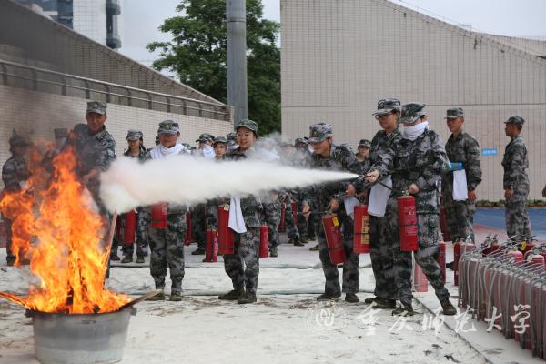 为全面提高beat365官网新生消防安全素质和自防自救能力,深入推进大学军训工作,丰富军训教学内容。9月23日下午,由学校保卫处、军训办等多部门联合组织了一场新生消防演练。