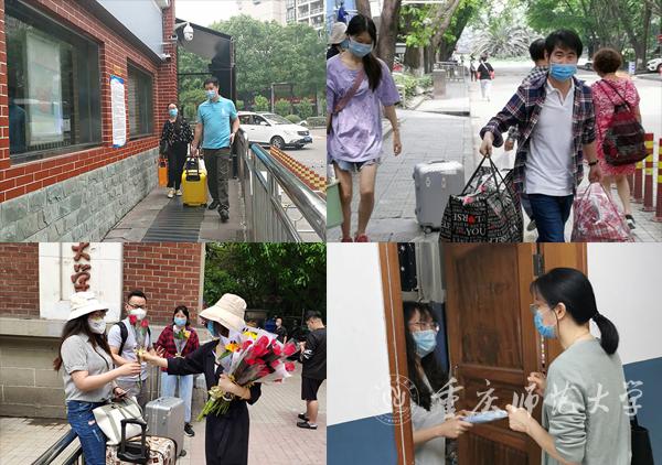 5月12日早晨,学校党委书记曾礼、校长孟东方到学校门口迎接返校学生。学生处全体干部轮班全天候在学校大门口迎接学生,并为学生解答相关问题。各学院根据学校安排结合学院实际开展了各具特色又不失温馨的学生返校服务工作。地理与旅游学院领导深入学生寝室慰问返校学生,了解学生求职就业情况;化学学院分管领导和辅导员到寝室发放防疫物资,提前给考研学生准备复试的场地;外国语学院为每个返校学生发放“抗疫爱心包”,送上鲜花“回家礼”;音乐学院积极跟家长、同学开展一对一问题解答,第一时间到寝室慰问返校同学。
