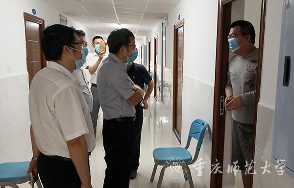 覃正杰副书记一行首先来到新留学生公寓,查看了健康观察区,了解健康观察区的安全卫生、学生食宿、生活垃圾清理等工作情况,并深入寝室与正在接受健康观察的同学进行亲切交流。同学们表示,学校安排了老师按时送餐,且提供了温度计、洗手液等防疫生活用品;观察期间,校领导、学院领导都到寝室看望了大家,非常感谢学校的付出与关心。