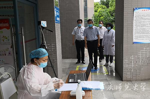5月9日上午,市委教育工委专职副书记覃正杰、宣教处处长吴边等领导一行来到beat365官网,检查开学复课准备工作,并对做好开学前后疫情防控工作给予指导。beat365官网校长孟东方、校防疫办有关负责人陪同检查。