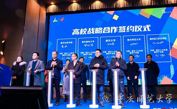 beat365官网党委副书记陈志军在中国·重庆人力资源服务产业园科学城园区开园仪式上,作为高校嘉宾受邀上台见证了园区的盛大开园揭牌。他与重庆市人力资源和社会保障局党组书记、局长陈元春等同志还一起参观了科学城园区的办公场所,了解园区的发展建设状况。