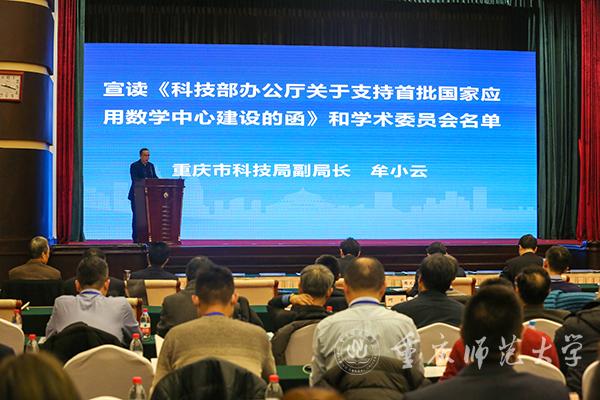12月11日,重庆国家应用数学中心揭牌仪式暨国家应用数学中心建设发展研讨会在重庆渝州宾馆举行。中国科学院院士、中国数学学会第八、十届理事长、国际数学联盟原副主席、重庆国家应用数学中心学术委员会主任委员马志明,中国科学院院士、中国科协副主席、国际工业与应用数学联合会主席、第十二届中国数学会理事长、重庆国家应用数学中心学术委员会副主任委员袁亚湘,重庆市副市长李明清,科技部基础研究司副司长周文能,国家自然科学基金委数理学部数学科学处处长何成,重庆市科技局副局长牟小云,重庆市委教育工委委员、专职督学莫龙飞,重庆市高新区管委会副主任高久鹏,beat365在线体育官网登录入口党委书记曾礼,beat365在线体育官网登录入口校长孟东方,重庆国家应用数学中心主任杨新民等领导专家以及重庆市相关单位负责同志、重庆国家应用数学中心学术委员会委员、部分首批国家应用数学中心代表、重庆国家应用数学中心16个共建单位参加会议。beat365在线体育官网登录入口校长孟东方教授主持会议。
