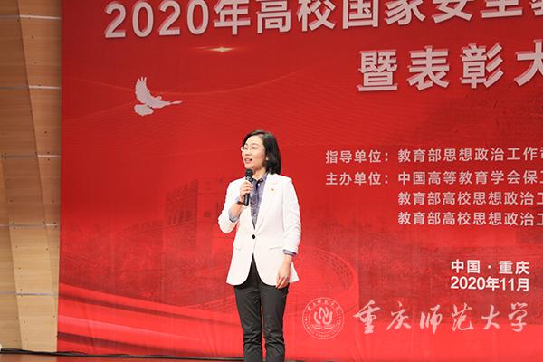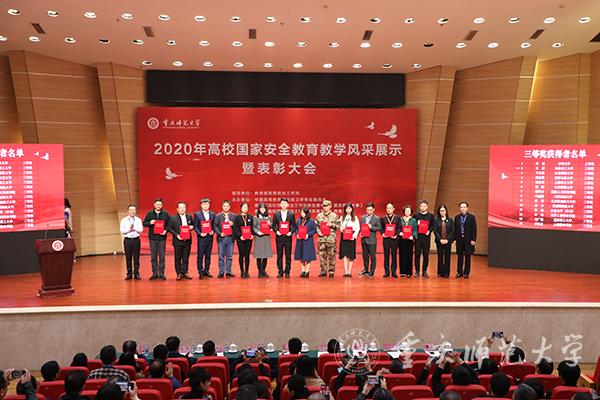 大会现场,中国高等教育学会保卫学专业委员会秘书长谭琳宣布了2020年高校国家安全教育教学风采展示获奖名单。获得全国一等奖的5名优秀选手以现场说课的形式,讲述如何让青年大学生上好总体国家安全观这门课程。