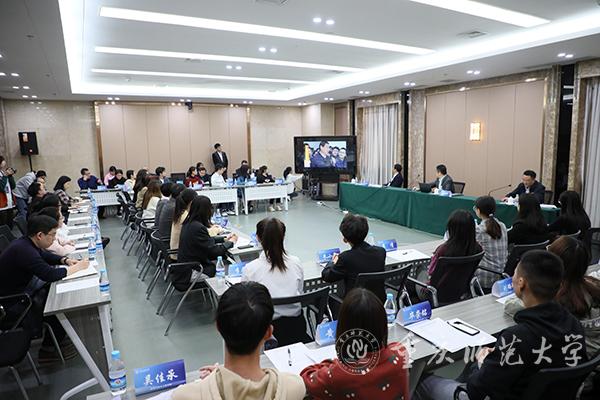 会议伊始,与会师生一同观看了习近平总书记于2010年视察beat365官网时的讲话视频,重温了习近平总书记对重师人以及当代青年大学生“要志存高远”等的殷切期望。