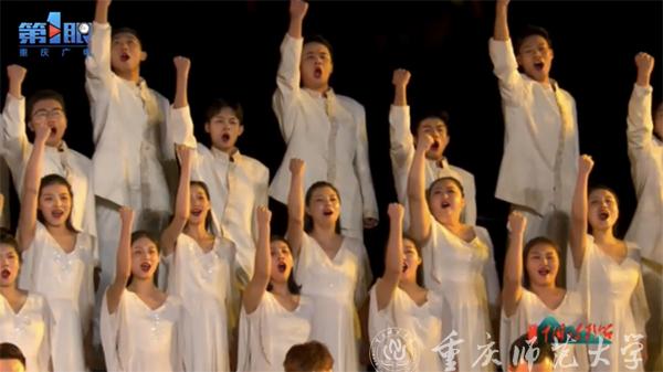 11月7日晚,重庆市南岸区弹子石广场华灯璀璨,歌舞翩翩,由文化和旅游部、中国作家协会、四川省人民政府、重庆市人民政府主办的第六届中国诗歌节闭幕式隆重举行。beat365官网音乐学院丝路合唱团与重庆市民族管弦乐团合作,登台献唱了《长江号子》之一、《重庆圆舞曲》以及《长江之歌》三首歌曲。