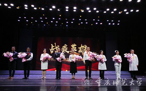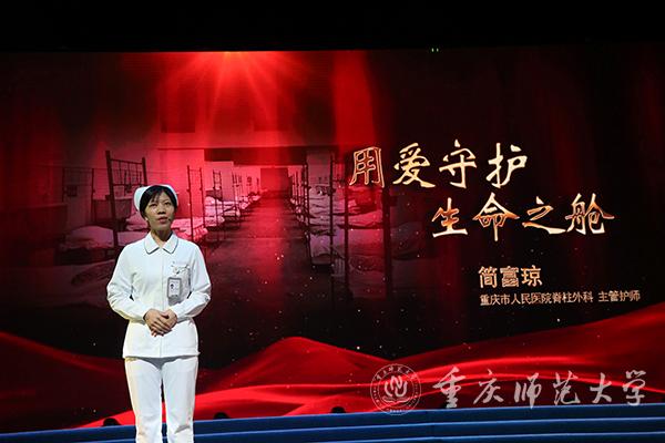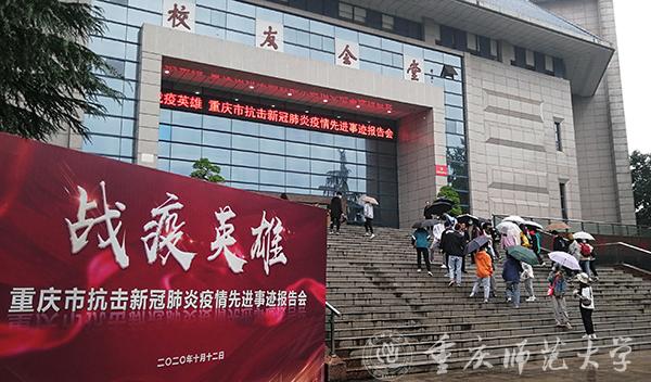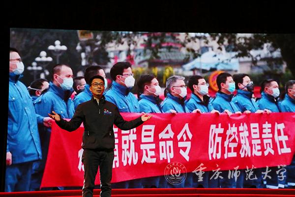 在平凡中铸就伟大,在战”疫“中诠释担当。为加强和改进高校思想政治教育工作,引导广大学子厚植爱国情怀、树立强国志向、践行报国使命,10月12日上午,市委宣传部、市委教育工委在beat365在线体育官网登录入口校友会堂演播厅组织了一场“抗疫英雄重庆市抗击新冠肺炎疫情先进事迹报告会”,开展了一堂弘扬伟大抗疫精神的公开思想政治理论课。