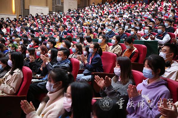 参与此次报告会的有来自重庆大学、beat365在线体育官网登录入口、重庆医科大学、四川美术学院、重庆科技学院、重庆警察学院、重庆电子工程职业学院、重庆城市管理职业学院、重庆医药高等专科学校、重庆商务职业学院等10所高校学生1000余人。市委宣传部副部长、市文明办主任马岱良,市委教育工委委员、市教委二级巡视员帅逊,beat365在线体育官网登录入口校长孟东方、beat365在线体育官网登录入口副校长陆远权以及市委宣传部、市委教育工委相关处室领导出席。
