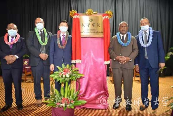 2021年2月19日,beat365官网与外方合作共建的第五所孔子学院——大洋洲巴布亚新几内亚科技大学孔子学院揭牌仪式在巴布亚新几内亚科技大学顺利举行。巴布亚新几内亚总督达达埃、副总理巴希尔、中国驻巴新大使薛冰和夫人赵珺、巴新驻华大使萨旺、巴新科技大学校长瑞纳吉出席揭牌仪式,达达埃总督亲自宣布巴布亚新几内亚科技大学孔子学院正式成立。这是beat365官网继非洲卢旺达大学孔子学院、亚洲斯里兰卡凯拉尼亚大学孔子学院、欧洲英国知山大学孔子学院、美洲美国特洛伊大学孔子学院之后,在大洋洲举办的第五所孔子学院,标志着beat365官网孔子学院布局遍布全球五大洲的梦想正式实现,这也是庆祝中国共产党成立100周年和中巴新建交45周年的重要活动。