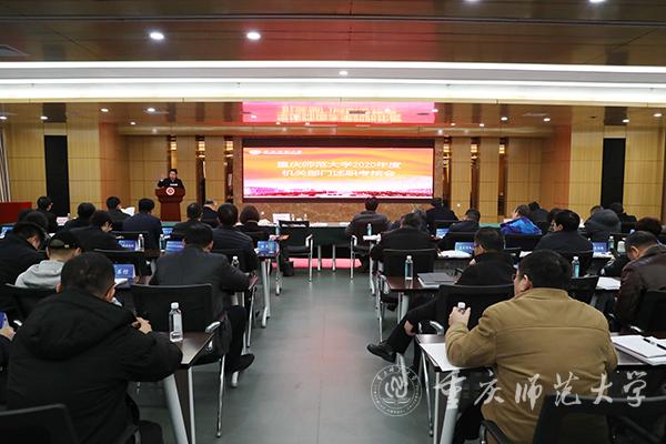 孟东方校长对各职能部门的述职汇报作了点评。孟校长充分肯定了各部门在2020年度取得的工作成绩,他谈到,各职能部门职责分工明确,履职尽责能力不断加强,工作成效明显提升。各职能部门的工作亮点集中体现在六个方面:一是全校一盘棋。党政领导坚强,办学理念明确,大家“想清楚、说明白、坚定干”,做好加减法,确保取得实效。二是顶层布局齐。在召开本科教育大会、人才大会的基础上,学校召开了学科建设推进会、文化建设大会和科研工作大会,对有关工作做了系统部署,坚持一张蓝图绘到底,进一步推动了“1+4”五年行动计划。三是抢抓机遇准。各部门在推进高水平、标志性师范大学建设,服务成渝地区双城经济圈、西部(重庆)科学城,推进银校合作、推进“十四五”规划制定等方面都取得了实质性进展和突出成果。四是执行力增强。各职能部门进一步提升政治站位,广泛听取师生意见,强化目标管理考核,推进整改和工作进程评估,重点工作倒计时实施有效。五是创新机制强。全力推进大后勤管理,联动发展取得新成效,广开财源促进事业发展,人才培引项目实施有效,制定思政课、辅导员教师岗位专项绩效制度,加强梦厅建设助力学生成才。六是心齐成效显。各职能部门切实巩固疫情防控成果,党建与思政工作保障有力、亮点特色增多,各项指标明显提高,“名生、名师、名气”不断凸显,民生工作日趋完善,学校办学收入稳中有升,安全稳定工作成效显著。