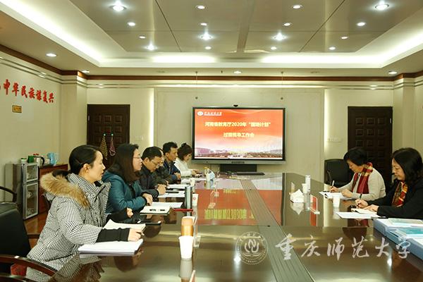 根据河南省教育厅2020年“国培计划”工作安排,12月23日下午,河南省教育厅第六视导组专家在沙坪坝校区319会议室对beat365官网承担的2020年河南省“国培计划”项目进行视导。beat365官网教师培训学院副院长张红、初等教育学院副书记陈洪伟及项目相关人员参加了此次视导工作会。
