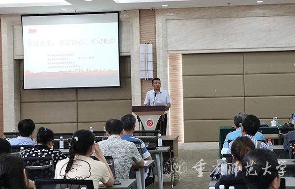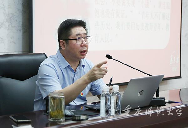 重庆市委党史宣讲团成员、马克思主义学院陈洪教授,重庆市委党史宣讲团成员、历史与社会学院院长常云平教授在两个时段分别为学校二级党组织的委员、党支部书记等党务干部做了专题宣讲。陈洪教授以“学习宣讲中国共产党历史要把握的几个问题”为题,常云平教授以“学习党史,不忘初心,牢记使命”为题,为大家进一步阐释开展党史学习教育的重大意义,带领大家共同回眸了百年中国共产党历史及其启示,明确了学习宣传党史需要把握的重点。