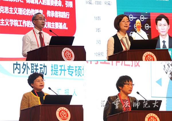 随后,马克思主义学院党委书记刘军、历史与社会学院党委书记王丽萍、教育科学学院院长朱桂琴、数学科学学院院长吴至友结合本学院研究生教育的特色和亮点就党建和思想政治教育及博士生人才培养,专业学位和学术型研究生人才培养等方面进行汇报交流。研究生导师代表付世建教授就研究生培养的经验和心得发言。人事处处长杨江水就推进教师成长全周期评价助力研究生教育高质量发展、科研处处长付文升就聚焦高质量科研成果服务人才培养与学科发展、研究生院院长李荣就研究生教育高质量发展拟出台的相关文件解读三个方面,从深入三者联动的角度出发,就加快学校研究生教育高质量发展作汇报发言。