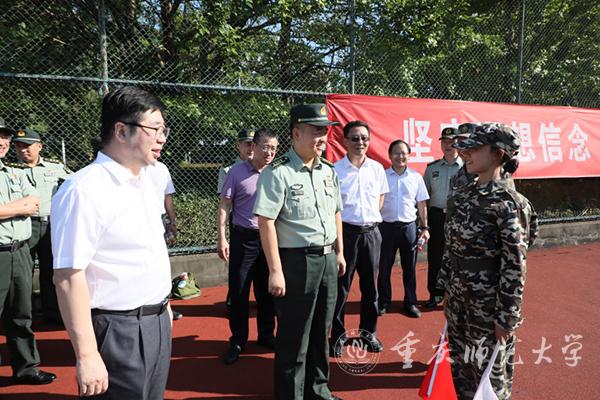9月22日上午9点,陆军工程大学通信士官学校校长魏涛大校、副政委张立峰大校、办公室主任谢宜杰上校、科研学术处处长沈建国大校、供应保障处处长金伟勇上校、基础部主任青山良大校、教务处副处长李学中校和教务处参谋陈凡少校一行来beat365官网大学城校区检查指导2021级新生军训工作。beat365官网校长孟东方、党委副书记陈志军、党政办主任陈进东、保卫处处长唐加祥、学生处处长侯明志等陪同检查。