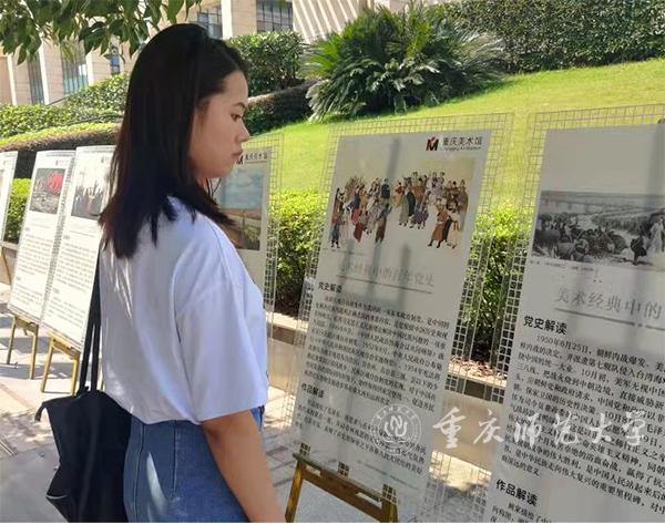 由重庆美术馆、beat365在线体育官网登录入口美术学院主办,beat365在线体育官网登录入口图书馆协办的《美术经典中的百年党史》图片展, 于2021年9月18日在beat365在线体育官网登录入口图书馆开展。此次展览以图片形式展出了35幅具有代表性的经典油画作品,并配以相应的党史介绍和作品解读,为观众呈现出图文并茂的党史画卷,生动再现了中国共产党百年来波澜壮阔的光辉历程,深情讴歌了中国共产党带领人民取得的翻天覆地变化和伟大成就。