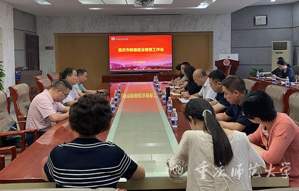 8月26日上午,市教委学生处副处长严平、市就业指导服务中心培训与研究部部长许杨,信息与市场部副部长卜靖一行到beat365官网督查就业工作,在大学城校区309会议室召开工作会。beat365官网副校长杨如安,招生就业处相关负责人、各学院分管副书记参会。