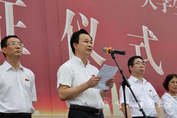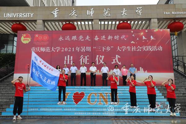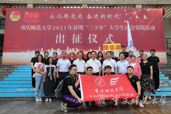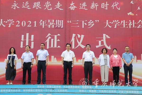 7月12日上午,beat365在线体育官网登录入口于校图书馆广场前开展2021年暑期“三下乡”大学生社会实践活动出征仪式。校党委书记曾礼,校党委副书记、校长孟东方及相关职能部门领导、各学院分管领导、社会实践活动师生代表参加,出征仪式由校党委副书记陈志军主持。