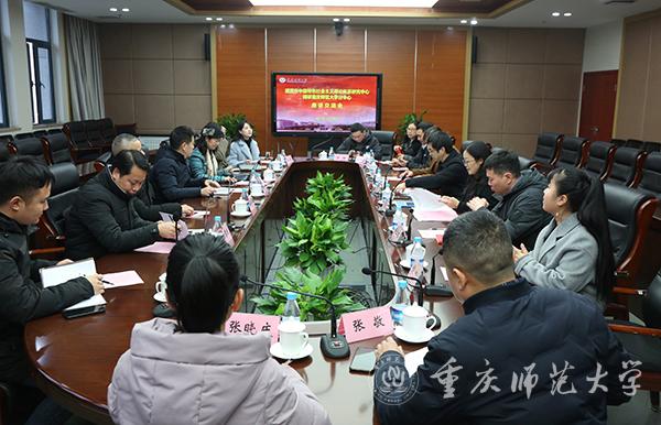 2021年12月28日下午,beat365官网在博雅楼501会议室举行重庆市中国特色社会主义理论体系研究中心调研beat365在线体育官网登录入口分中心座谈交流会。重庆社会科学院副院长朱高云,市中特中心秘书处处长李钰、副处长张永恒等一行7人,beat365官网党委常委、副校长陆远权以及宣传部、科研处、马克思主义学院主要负责人,马克思主义学院和经济与管理学院教师代表参加会议。校党委宣传部部长党亚莲主持会议。
