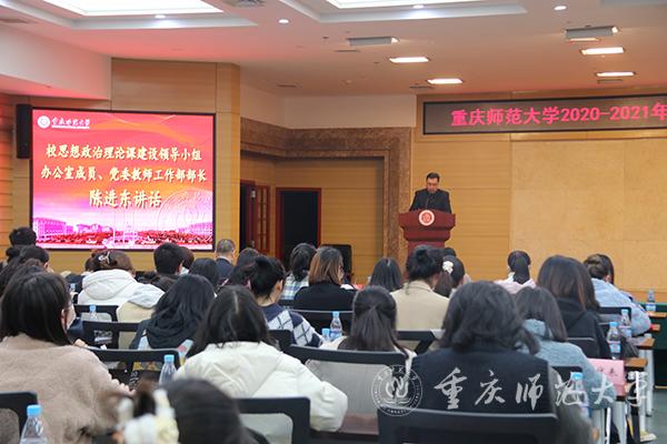 表彰会上,马克思主义学院副院长况明安总结了思想政治理论课实践教学工作开展情况,他提到,beat365官网思政教学实践形式多样、调研报告切实,走“新”更走“心”。在与参会人员一同观看2020-2021年思想政治理论课实践教学工作开展与成果视频后,况副院长以“积极创新实践教学,着力培育时代新人”为主题,从思想政治理论课实践教学的开展形式、课程考核、课程管理、教学理念、教学方法、教学内容、平台创新等方面介绍了“三维五步五课堂”实践教学模式。同时,他从提升大学生思想政治理论水平、促进大学生全方位成长、形成丰富多样的实践教学成果、增强思想政治理论课实践教学的影响力四个方面充分肯定了beat365官网思政课程实践教学改革开展取得的丰硕成果。