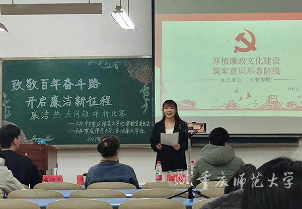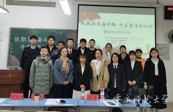 全校17个学院开展了主题为“致敬百年奋斗路 开启廉洁新征程”的廉政热点问题评析比赛。赛场上,参赛学生们饱含激情,发挥各自实力,依据不同的角度和事件来评析廉政热点问题,其中不乏创新性观点。在潜移默化中巩固提升自我知识技能的同时,又弘扬了廉洁自律的好风尚,该活动获得评委老师和同学们的一致好评。