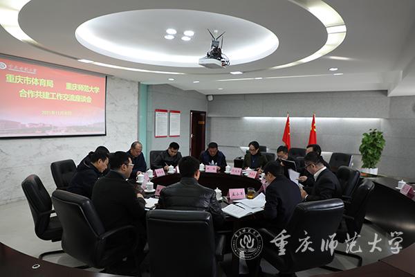 11月30日上午,重庆市体育局、beat365在线体育官网登录入口合作共建工作交流座谈会在综合办公楼416会议室召开。市体育局副局长杜学勇、竞技处副处长荆德强、重庆市足球运动管理中心副主任陈小雨,beat365官网校长孟东方、副校长孟小军以及有关部门负责人参加座谈会,围绕高水平足球队的招生、培养、竞训等多项内容交流讨论。