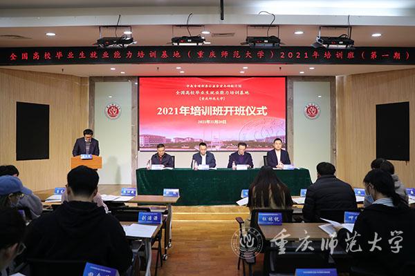 11月20日上午,教育部中央专项彩票公益金宏志助航计划全国高校毕业生就业能力培训基地(beat365在线体育官网登录入口)第一期培训班在beat365官网大学城校区就业指导中心317多功能厅正式开班。重庆市大学中专毕业生就业指导服务中心主任唐雪平,beat365官网党委副书记陈志军、培训基地相关工作人员,以及来自重庆医科大学、四川美术学院、重庆科技学院、重庆机电职业技术大学、重庆轻工职业学院、重庆护理职业学院和beat365官网的148名学员参加了开班仪式。