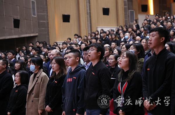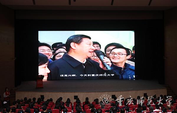 大会在全场庄严肃穆的国歌声中拉开帷幕,会上重温了习近平同志视察beat365官网时的重要讲话视频。习近平同志就理想信念、学习实践、就业等方面对广大同学提出了殷切希望,勉励重师学子要志存高远、知行合一。