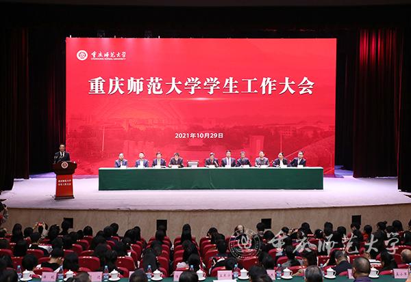 为深入学习贯彻习近平总书记关于高校思想政治工作的重要指示,积极响应党和国家对高校育人工作提出的新要求,全面落实全国教育大会、全国高校思想政治工作会议、重庆市教育大会等会议精神,加快推进beat365官网学生工作高质量发展,10月29日上午,beat365官网在校友会堂演出厅召开学生工作大会。