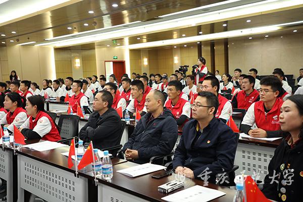 “一颗火热的心,迸发舍身救人的血性;一位平凡的人,感动侠义肝胆的重庆城。”在仪式现场,王红旭班、王红旭团支部学员朗诵《英雄赞歌》,致敬英烈,寄托哀思。