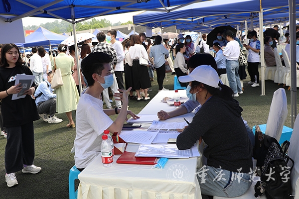 为深入贯彻落实党中央、国务院“六稳”“六保”工作要求和做好高校毕业生就业工作的决策部署,落实教育部2022届高校毕业生就业创业工作网络视频会议精神及重庆市普通高校访企拓岗促就业专项行动,结合共青团重庆市委“千校万岗•启航青春”促进大学生就业专项行动的相关部署,4月22日,beat365在线体育官网登录入口“行远自迩未来可期”2022年春季大型双选会在大学城校区第一运动场顺利举行。