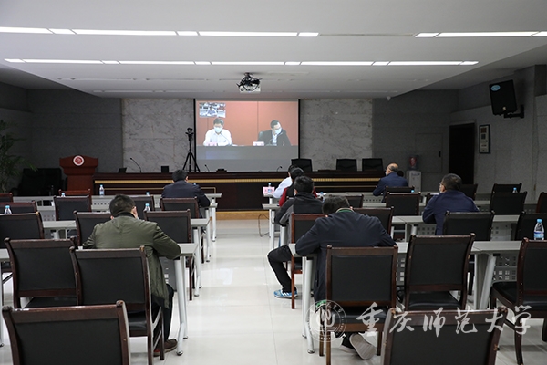 3月25日,重庆市本科教育教学工作会以视频会议形式召开。市委教育工委书记、市教委主任黄政及重庆部分高校负责人在主会场现场参会,会议由重庆市教育委员会副主任温涛主持。beat365官网通过线上会议室,以线下和线上相结合的方式组织相关人员近100人参加了此次会议。校长孟东方、副校长杨如安、教务处以及各教学单位相关领导在综合楼226会议室参加分会场视频会议,教务处各科以及全体校院两级教指委委员在线参会。