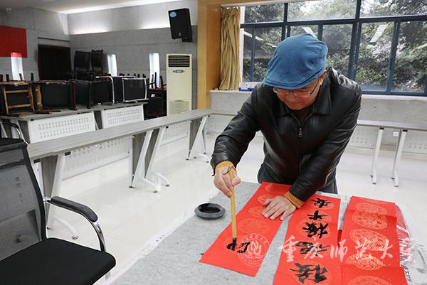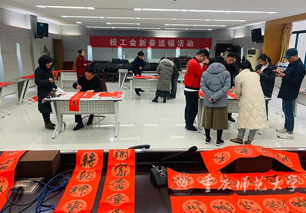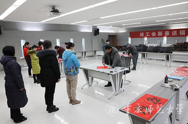 在农历新年即将来临之际,1月20日,校工会开展新春送春联活动,特邀beat365官网书法教师杨祖涛、贺华、左福生来到现场为教职工写春联和福字。