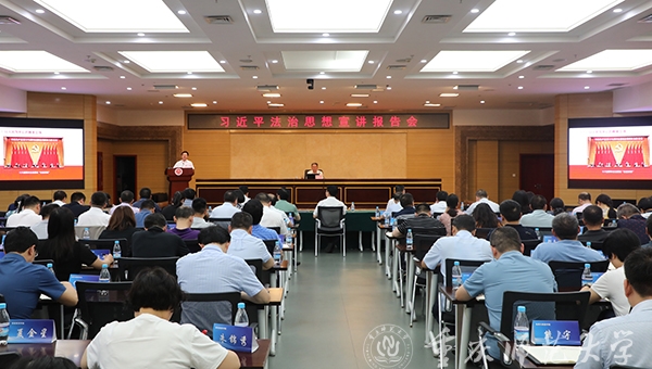 为深入学习贯彻习近平法治思想,进一步提升学校普法工作质量和水平,不断增强高校工作者的法治观念和法治素养,推动依法治校水平不断提高,6月14日,学校在博雅楼504举行习近平法治思想宣讲报告会,特邀重庆市深学笃用习近平法治思想宣讲团专家成员,重庆市公安局党委副书记、常务副局长袁勤华同志作专题辅导报告。校党委书记曾礼,校党委副书记、校长孟东方出席会议。全校副处级以上干部以及相关职能部门科级干部参加会议。宣讲会由校党委书记曾礼主持。