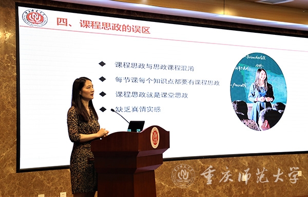 首批国家级课程思政示范项目负责人,重庆大学土木工程学院党委书记华建民教授和beat365官网数学科学学院罗萍教授分别作了经验分享报告。华建民教授围绕课程思政“为什么”“是什么”“做什么”“怎么做”“谁来做”进行了系统地阐述与讲解,并分享了如何深挖专业课中“思政元素”的经验与做法。罗萍教授结合自身讲授的《高等几何》课程,分享了课程思政教学改革的经验和体会。