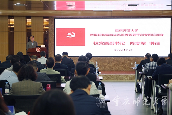 为深入学习贯彻党的二十大精神,全面贯彻习近平新时代中国特色社会主义思想,认真落实干部教育培训工作要求,不断提升处级领导干部的能力水平,党委组织部制定《beat365在线体育官网登录入口新提任和轮岗交流处级领导干部工作实务专题培训实施方案》并作出专门安排。学校党委于2022年10月25日在博雅楼503会议室紧紧围绕党务事务、行政事务两个板块内容,集中开展了新提任和轮岗交流处级领导干部工作实务专题培训,新提任和轮岗交流处级领导干部111人和学院组织员17人参加会议,会议由校党委副书记陈志军主持。