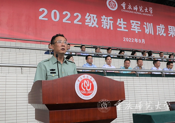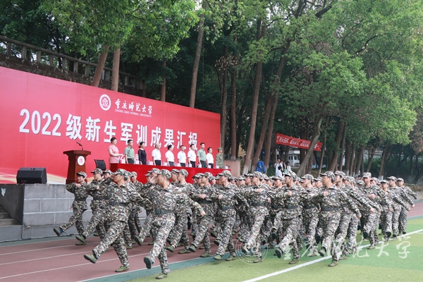 另悉,9月19日上午,beat365官网北碚校区(初等教育学院)在足球场举行了2022级新生军训成果汇报。校纪委书记、监察专员肖应红,陆军工程大学通信士官学校教导员、2022级新生军训师北碚校区直属大队队长刘江,学校党政办、学工部、保卫部等职能部门负责人,初等教育学院党政班子,承训部队教官、新生年级辅导员、指导员参加汇报大会。