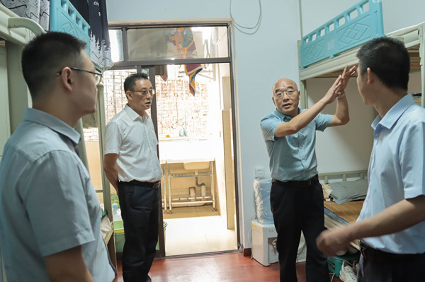 陈志军一行首先到训练场视察军训工作,关心慰问2022级学生军训北碚直属大队的教官、指导员和全体参训新生。他指出,军训是大学生迈进大学校门的第一课,也是培养身体素质和意志品格的重要方式。初等教育学院的同学在训练中展现出良好的精神面貌,希望同学再接再厉,用积极的态度面对大学生活。随后,陈志军一行深入学生寝室和食堂,了解学生学习和生活情况,关心菜品价格,指出要以提高学生满意度为出发点做好服务保障工作。