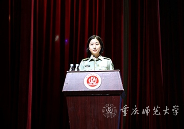 生命科学学院2019级生物科学(师范)专业李进平同学作为高年级学生代表发言。她分享了自己在重师从懵懂茫然到能独立完成实验设计的成长经历,激励同学们坚定初心,行而不辍,走好这一代人的长征路。